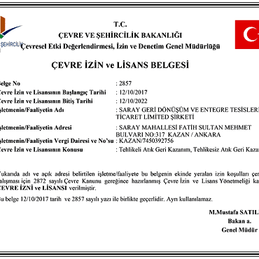 ÇEVRE İZİN LİSANS BELGESİ